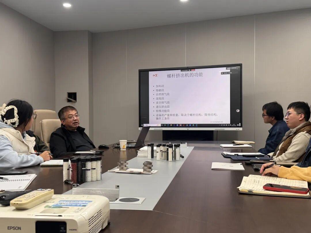 在分享会上,关晓春经理的讲解深入浅出,从设备结构到工艺优化,系统解析了高扭矩设计的核心价值。他结合具体案例,生动阐述了高扭矩双螺杆挤出机在应对复杂材料加工中的卓越性能,深化大家对设备工作原理的理解,为后续技术应用提供扎实的理论基础。